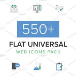 550+扁平通用互联网应用图标集 550+ Flat Universal Web Icons Pack